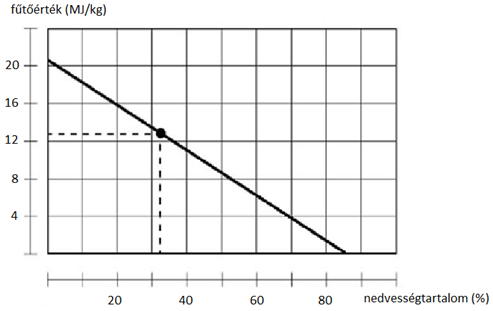 A fa fűtőértéke viszont annál kisebb, minél nagyobb a nedvességtartalma. Ezt tanulmányozhatjuk az alábbi ábrán: